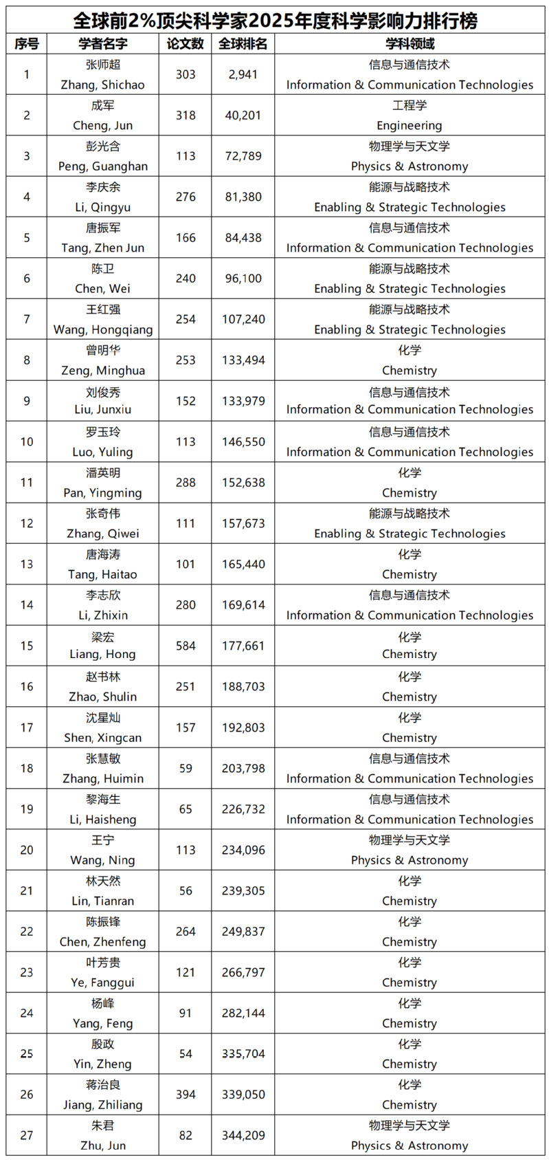 据悉,全球前2%顶尖科学家榜单分为“终身科学影响力排行榜(Career-long Impact)”和“年度科学影响力排行榜(Single-year Impact)”两大部分。榜单基于Scopus数据库,通过论文引用数、h指数、合著者调整后的hm指数、单独或第一作者文章引用数等多项关键指标进行综合评估。从全球近700万名科学家中遴选出各学科前2%的顶尖学者,覆盖22个主学科领域和174个子领域。“终身科学影响力排行榜”旨在衡量科学家整个学术生涯的长期综合贡献;而“年度科学影响力排行榜”则更聚焦于科学家上一年度的科研产出与学术活跃度。此次多位学者的入选,标志着实验室在可持续创新能力与高水平学术影响力方面获得了国际范围的广泛认可。
